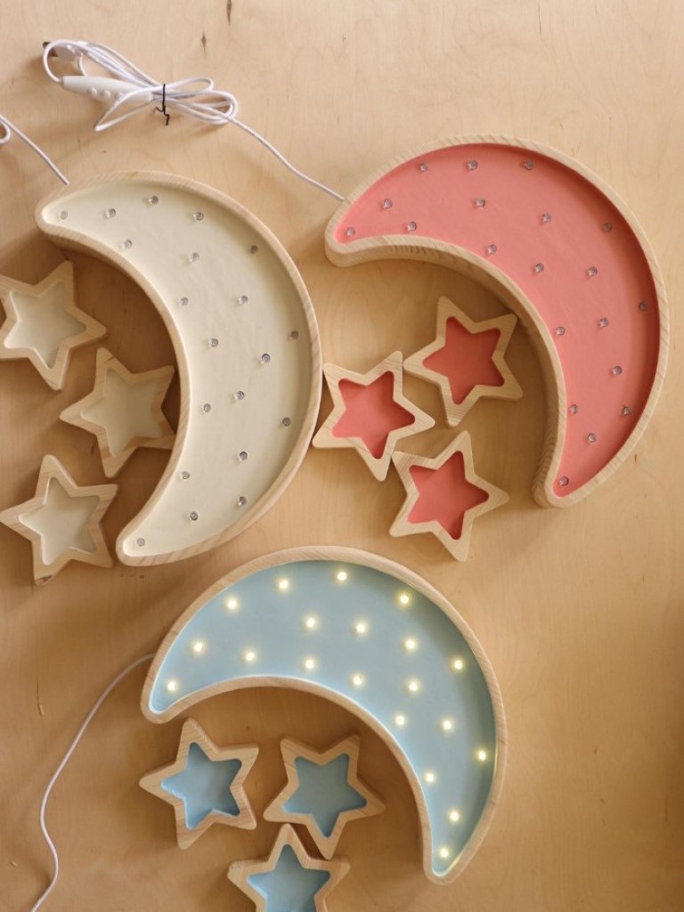 Wir präsentieren Ihnen handgefertigte Nachtlampen aus Holz mit LED-Dioden. Was sie verbindet, sind die feinen und hoffnungsvollen Formen. Ohne großen Aufwand fügen sie sich ideal in verschiedene Einrichtungsstile eines modernen Zuhauses ein und verleihen ihm den nötigen Charme. Eines ist sicher: Kinder werden sie einfach lieben!
